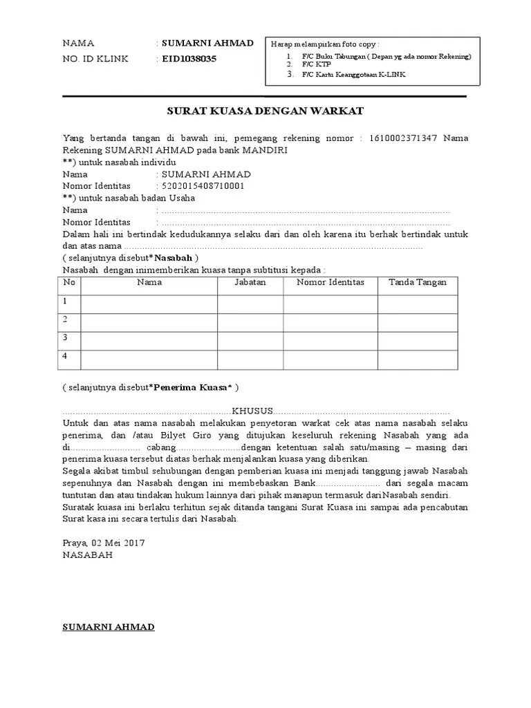 Contoh Surat Kuasa Bank Mandiri / Contoh Surat Kuasa Pengambilan Surat Referensi Bank Quadrant Co Id - Check spelling or type a new query.. We did not find results for: Maybe you would like to learn more about one of these? Check spelling or type a new query. Contoh surat kuasa bank mandiri.