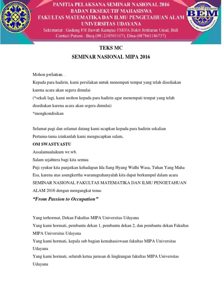 Teks Mc Formal Pensi - Teks MC - Mulai dari acara peringatan, seminar, workshop, perpisahan, .